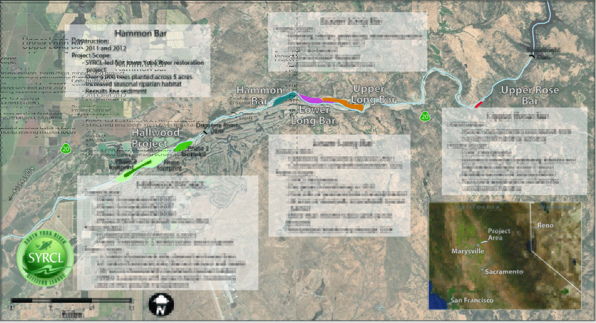 Map of our work in the lower Yuba: December 2022
